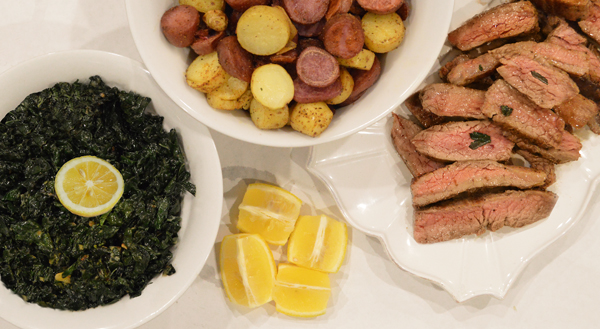 This was what I received to make Seared Flank Steaks with Roasted Potatoes and ‘Creamed’ Kale. Have I ever made seared flank steaks or creamed kale before in my life? No. So it was actually kind of fun to be pushed in a new direction.