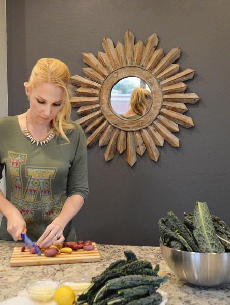 Here’s me begrudgingly having fun cooking. And concentrating, and being pale. Look at that mountain of kale! It seems like you could never eat that much kale, but it shrinks down a lot, so now you know.