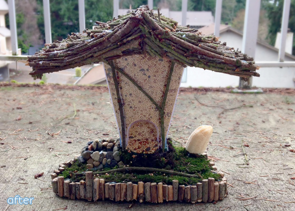 This next project from Better After reader Angela just tickles me to bits. A birdfeeder makeover for her baby daughter! Don’t worry, her daughter doesn’t eat birdseed, she just loves to look out the window, so Angela thought she’d try to attract some cute little birds to make the experience even more enjoyable. So sweet.