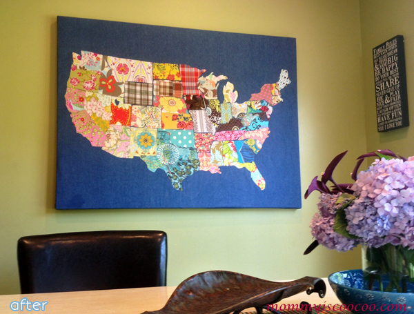 Amanda made a fabric scrap map and not only is it fun to say, it looks awesome! Oh man, I bet cutting out all those states was tedious, but worth it in the end. If you wanted to save time, I can see this looking pretty rad even as a single state silhouette. I think my state is pretty good looking, how about yours?