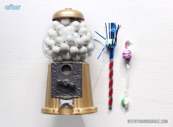 I almost put a gumball machine on a stand in my girl’s nursery. Then I realized they could be crushed by it if it fell. No bueno. It sure is a cute look though!