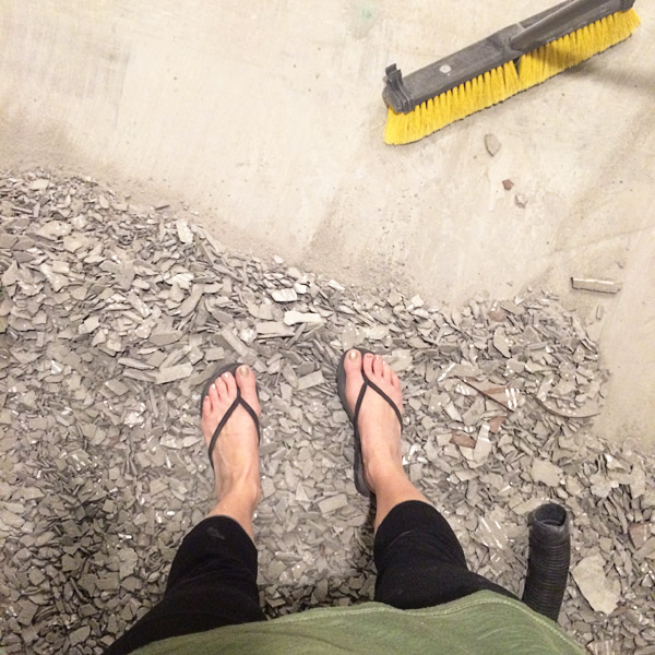 And that’s all for now! Sorry to leave you hanging! Especially on such a bummer of a photo. Take a good long look at it and think about how you didn’t have to be the one to haul away those piles of tile shards, and you’ll feel better.