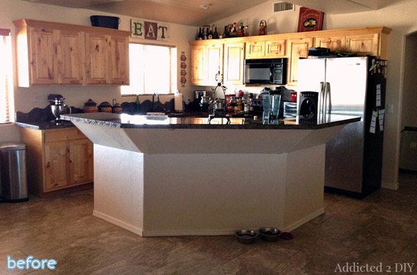 … a little DIY magic! Is that good looking or what? Katie and her husband brought it up to speed by chopping off the odd angled area and updating everything else using a product called AirStone, and you can read all about the process on her blog Addicted 2 DIY.
