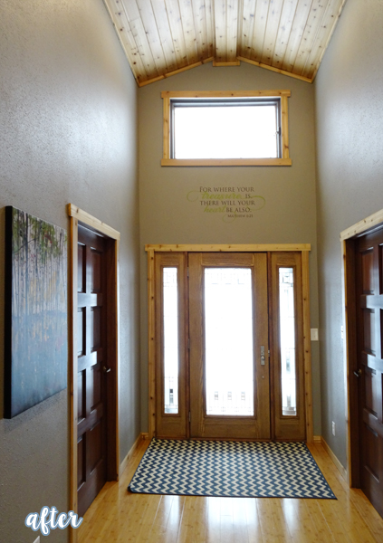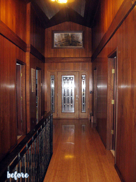 This hallway is really magnificent. Very cathedral-like. The before was so SO dark and gloomy, I don’t think I would have dared walk down it alone at night. Even just looking at the picture makes me nervous! But the after is so light and bright and airy, it’s like an entirely different room. Great job Angie! We want to see more!