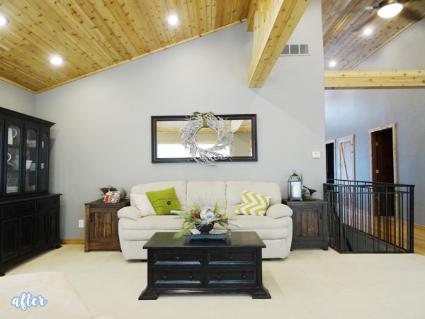 And now, to kick your Friday off right, please enjoy this living room and hallway makeover from Better After reader Angie. As you can see, it was previously a root cellar. I kid, I kid, butreally, it was DARK. She said the entire room only had one ceiling fan for light. And did you see those ceilings? Let’s zoom out …