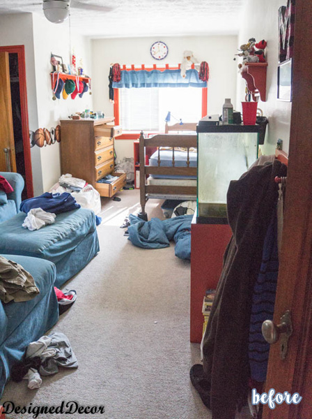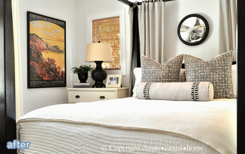 That left DeDe with a big blank bedroom to makeover, so she decided to turn it into a soothing gray and coral guestroom. It’s so welcoming! And dangerous! It needs a warning label: Beware! If your guestroom is too nice, your guests may never leave!