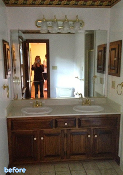 How big? Well, Jennifer at Dear Lillie didn’t replace any of the brass trimmings in her bathroom makeover, and I didn’t even notice! Check it out: