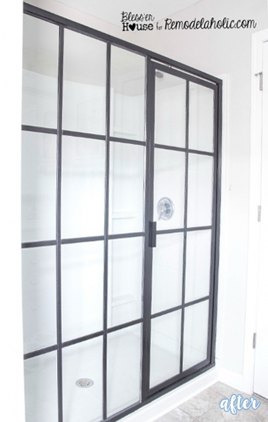It’s just spray paint and polystyrene moulding! And a few other things. Grand total was less than $60! Check out her full shower door makeover tutorial to learn how to make your own. Awesome work Lauren!