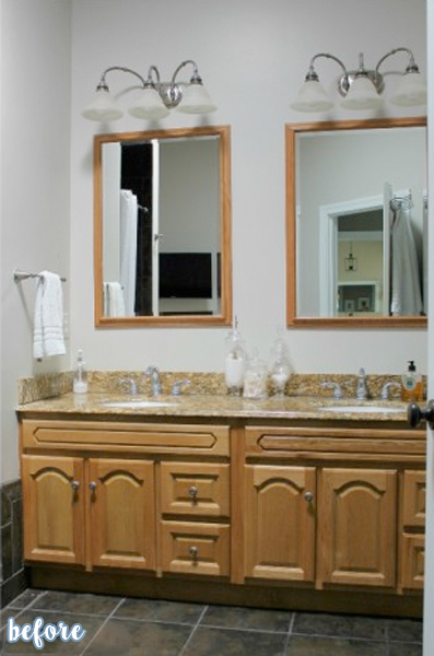 July 23, 2015 at 8:43 AMThe mirrors make the room look huge. I’m glad she put that sconce between the mirrors. I can only imagine how difficult putting on make up is with that bright overhead lighting.