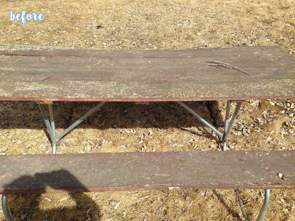 And lastly, here we have a picnic table perfect for serving up not much more than a splinter buffet. Yeowch. I would have probably taken a match or a monster truck to this thing, but Krista had less destructive plans, and turned it into a game table!