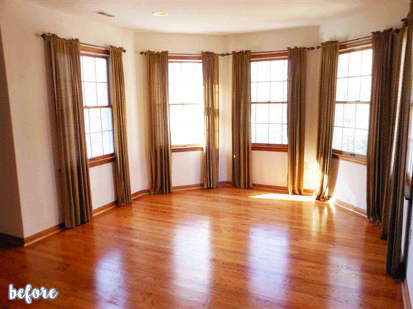 And now, please welcome Debbie and her charming bedroom makeover. Before, this room was super nice. Hardwood floors, tons of natural light. It seems to me that this is a space off of the bedroom, probably meant to be a sitting area or somesuch. If this space was in my bedroom, I would have kept it exactly the same and used it for twirling.