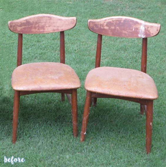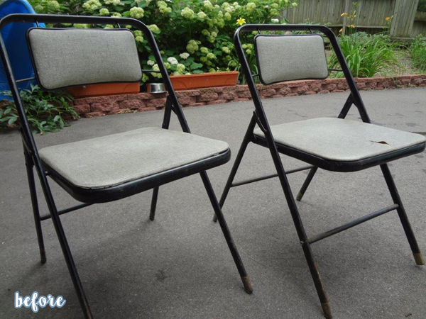 Folding chairs can get in on this party too! Better After reader Lindsay snagged this drab little pair from a neighbor’s yard sale, thinking she could cute them up considerably.