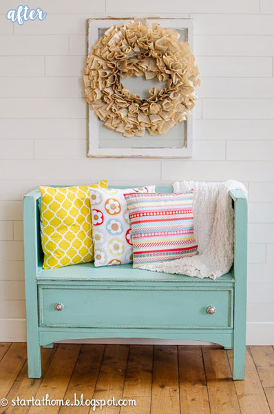 September 15, 2015 at 9:37 PMThe dresser to bench seat is just amazing! I love the new color and the pillows.