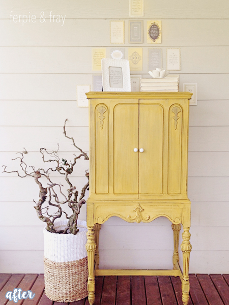Like Amanda’s cabinet, I am the taller of the two and also yellow. Or, at least my hair is. (All by itself, I might add. Natural blonde, that’s my one claim to fame.)