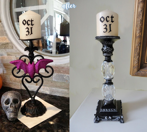 A dramatic candelabra! The hit of the party! Just stand by this thing and tell everyone you made it and no one will care that you didn’t even wear a costume or bring a dish to the potluck!