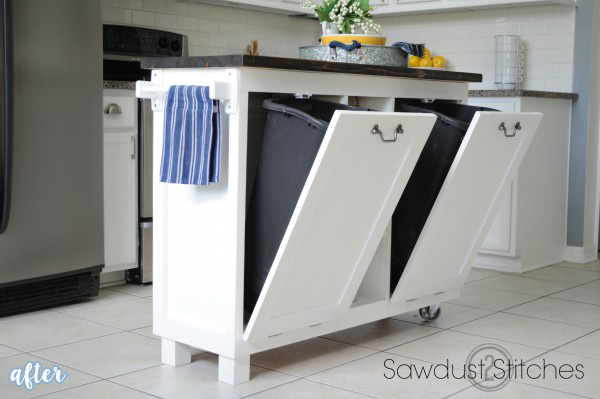 Not only did Corey create a kitchen island where there wasn’t even one before, she also turned it into a customized garbage can caddy. Smart! See how she did it all on her blog at Sawdust 2 Stitches.