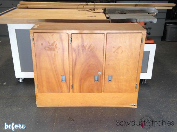 Next, Corey found this set of cabinets at a yard sale for $5. “That’s nice,” you are thinking “but most kitchens already come with cabinets, so big whoop.” No, NOT big whoop. Big Whoop! Feast your eyeballz on this: