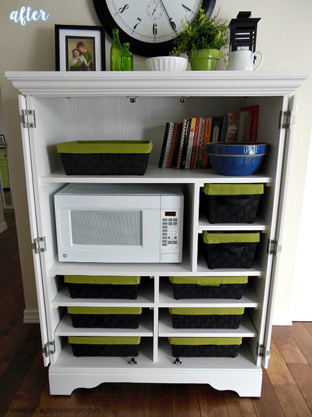 But Ann at Newton Custom Interiors did exactly that when she turned this boxy and outdated entertainment center into a microwave cabinet.