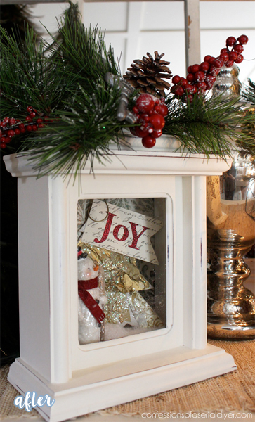 … paint it, gut it, and turn it into a shadowbox filled with glittery things, and it’s as Christmasy as figgy pudding.
