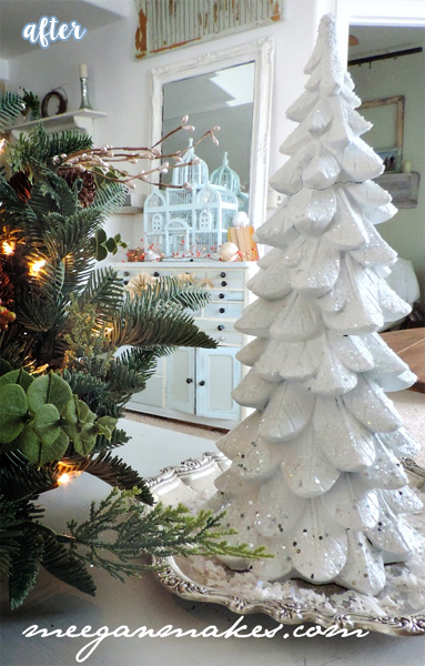 Was there anything wrong with this cute green tree? No sir. It was adorable as is. (As was?) But Meegan wanted a little more sparkle, and who can argue with that?
