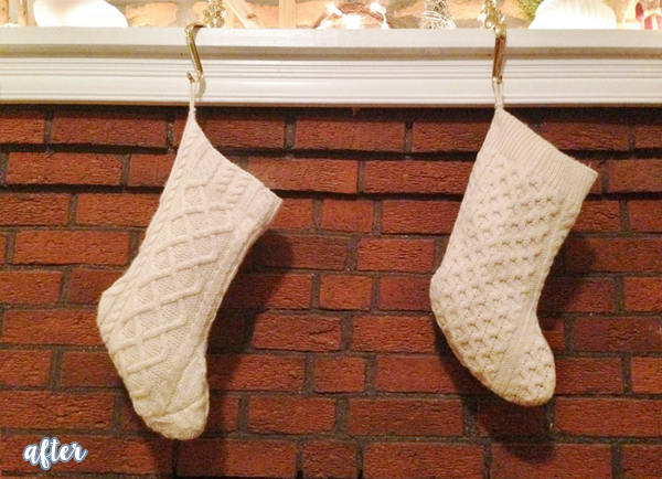 Stockings! So cute. And WAYYY easier than knitting your own. I would assume. I love the differences in their patterns, much more unique than a perfectly matching set. See the how-to on her blog Beginning In The Middle.