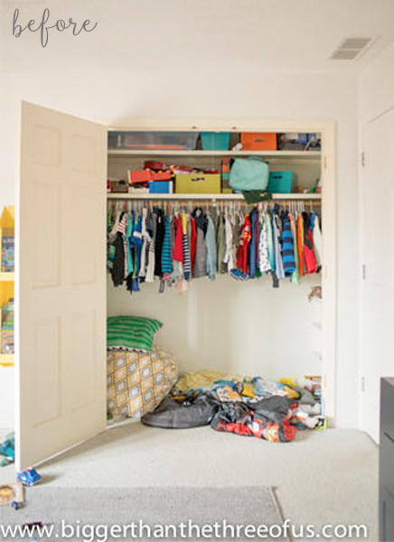 … a super cute and streamlined reading loft! Because no matter how old you are, a loft in your closet is the coolest. Plus now he can actually reach all his little clothes on the little hangers down below. Cuz himz still a wittle guy.
