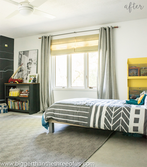Doesn’t it look great? Youthful and fun and just right for a *sniff* growing boy. See all the changes it’s been through on her blog Bigger Than the Three of Us.