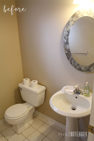 Let’s see what Sabrina at Pink Little Notebook did to electrify this unexciting powder room: