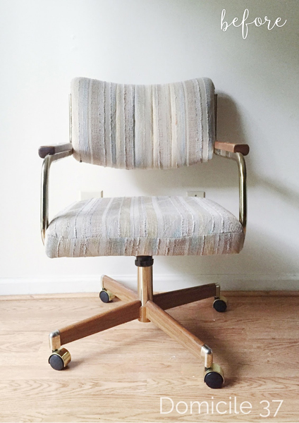 Let’s observe this chair for example. It was upholstered in a muted pastel fabric, reminiscent of a teacher’s lounge sofa. Definitely past its prime. But look!