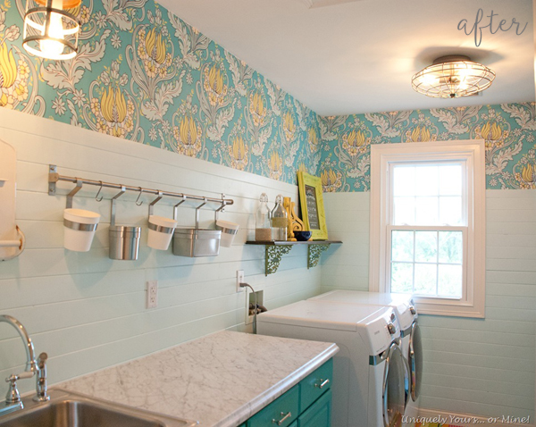 February 8, 2016 at 5:12 PMI’m so glad wallpaper is making a comeback! That’s a beautiful paper and the rest of the laundry room is gorgeous. Is that shiplap on the walls?