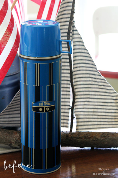 But what if you want to get in on the lamp-makeover-ing-fun, but you don’t have a crazy old lamp to makeover? Pshh, that’s fine! Just grab whatever is lying around and we’ll make it work. Small child? Maybe not. Broken thermos? Great.