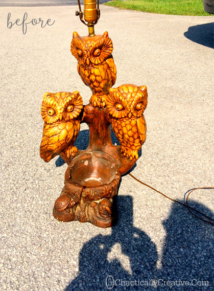 This lamp had everything. Scary owls. Creepy eyeballs that looked in opposite directions. Vivid poo color. Turtles. Empty hole to remind you about your fruitless hopes and dreams. I mean seriously, how cool can one lamp not get?