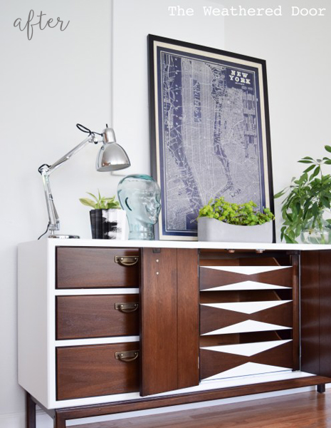 February 1, 2016 at 12:58 PMOh wow!! I want that piece in my house before or after but after is pretty darn incredible. The white with the dark wood is really wonderful. Very well done. I love those legs and the modern lines. This has me tempted to go get on craigslist and risk divorce because I just now discovered I need one more piece of furniture to complete my unfinished project hoard! 😉