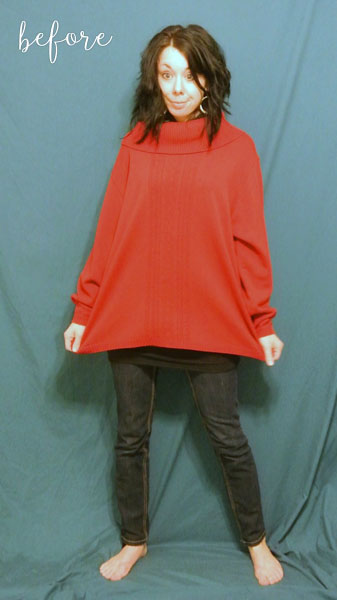 And while we’re going around cutting off sleeves, what do you think about this oversize sweater-turned-sweater-dress by the ReFashionista herself, Jillian?