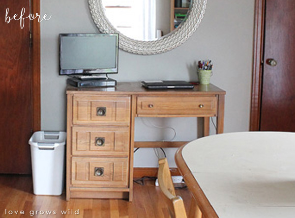 The original hardware was spruced up with a bit of gold spray paint, and this adorable desk now serves as blog headquarters for Liz at Love Grows Wild. Hop on over there to read more about her whole office makeover!