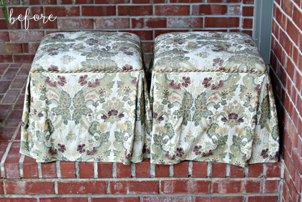 Hey everyone! Did you know that today is National Update an Ottoman Day? What better way to celebrate than with this pair of floral ottomans that desperately needed updating?