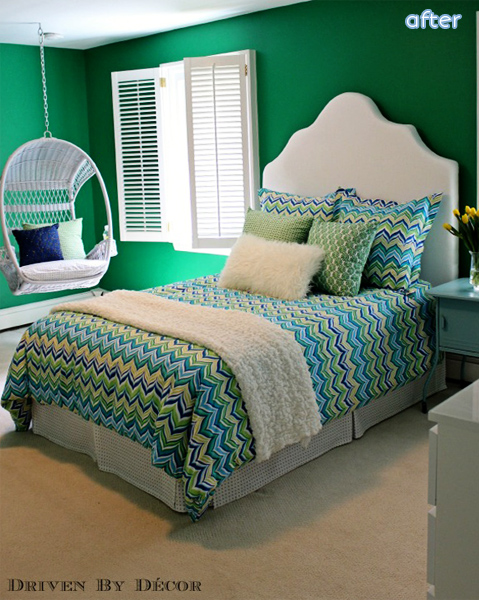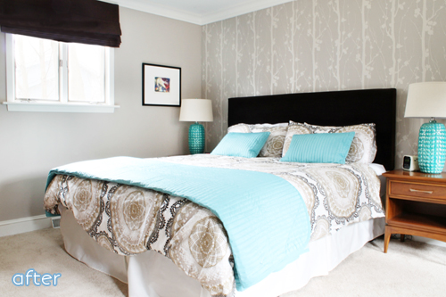 That’s was the color scheme Veronica had in mind to de-neutralized her guest bedroom. Did she pull it off?