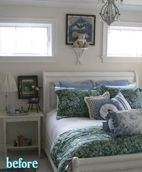 May 6, 2016 at 6:54 AMBoth the before and after are lovely, but I’m struggling to find an interpretation under which the before can be considered “masculine” by any stretch of the imagination! This seems like a transformation from “feminine” to “ultra-girlie.” I love the headboard.