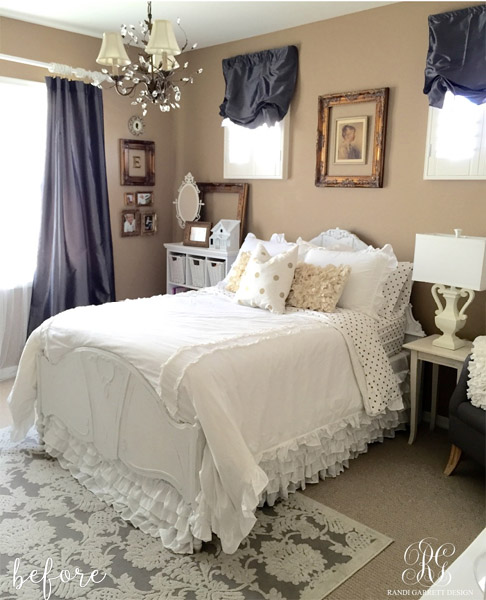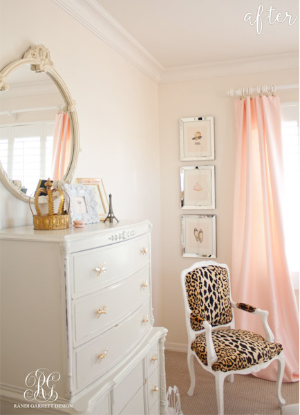 Is your inner 11-year-old girl squealing with delight? Mine is! Out went the tan walls and heavy blue drapes, and in came soft pinks, gold accents, and bright whites. It’s the epitome of dreamy. (Please someone start a girl-band and call it Dreamy Epitome, kthanks).