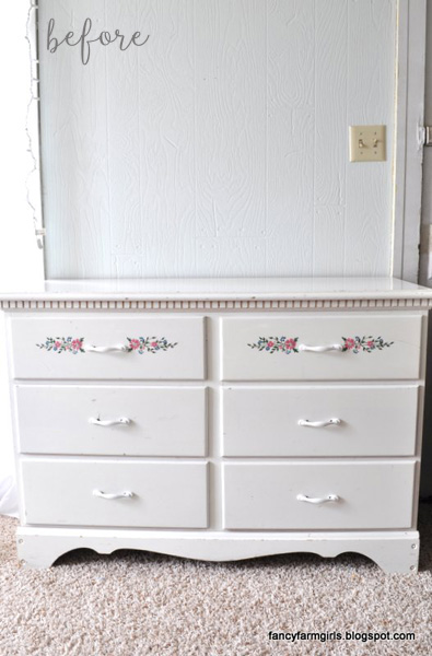 Simple changes made such a big difference, just paint and new hardware was all it took to bring this dresser up to date. From The Fancy Farmgirls, first featured by Brooke at All Things Thrifty.