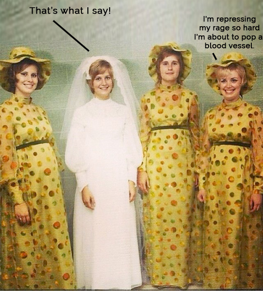 June 20, 2016 at 6:30 AMI’m wondering why those polka dot ladies in the wedding party are all standing like they are pregnant?