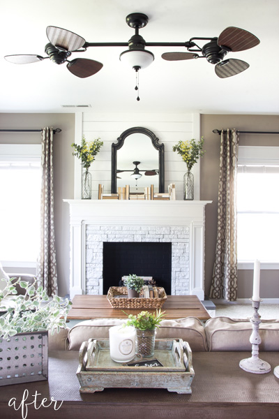 July 8, 2016 at 6:24 AMThe fireplace and mantel look amazing, but I’m kind of lusting after that ceiling fan too.