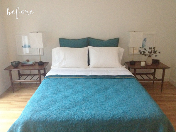 Lindsey also rearranged the artwork in the bedroom. Before, the paintings above the nightstand were so low, they didn’t do much besides weigh the room down. Most mid-century furniture has such a low profile anyway; you can see that everything in here was just a few feet off the floor.