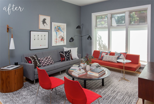 August 19, 2016 at 12:38 PMExcellent makeovers! I love the pops of color in the living room but the bedroom could use some as well.