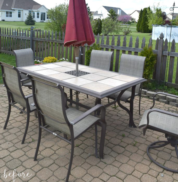 Emily from Our House Now A Home had an old patio table that was not her favorite. She has a much more colorful style, plus the tiles on the top kept breaking. She had dreams for a rustic hand-built table, but didn’t have the time to build one from scratch. Instead, she used the old table as a base and built a rustic tabletop to lay right on top. A coat of cobalt paint and a bright new umbrella completes the look.