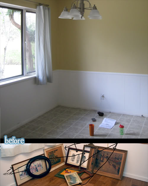 You can see exactly what she used on her blog The 2 Seasons, and chime in with the debate on what she should hang inside the rectangle to add a little color. Fun platter? Monogram? Halloween clown mask? (That’s my vote. Keeps the kids in check).