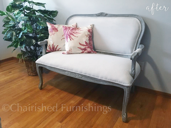 Oh, what’s that grannie? You didn’t realize how awesome it could look recovered in linen and painted gray? Well TOO BAD SO SAD! Jk grandma I love you. But no, you can’t have it back.