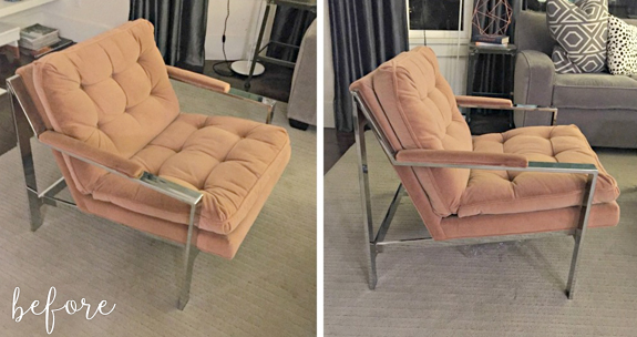 The fabric on this chair was also in good shape but a little dated and distracting.