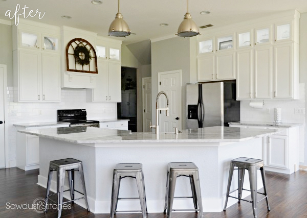 Right. Bones. Corey took the bare bones of this builder-grade kitchen and transformed them into a farmhouse fresh look that’s anything but basic.