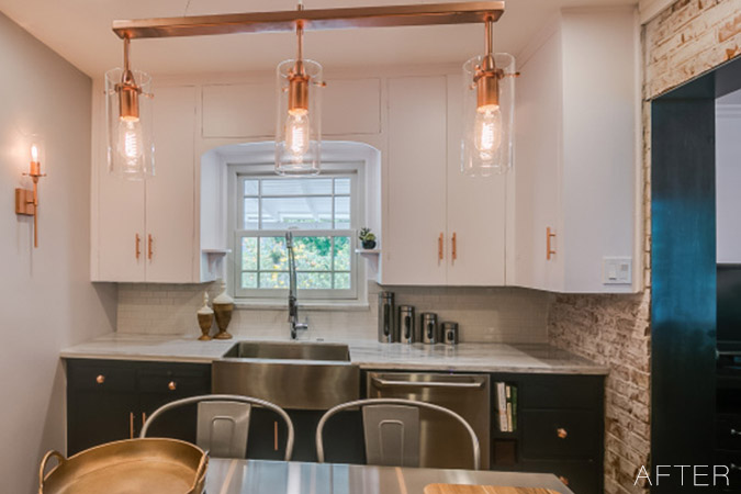 Here’s another look from the same angle as the before pic. Are you loving that copper, navy, and exposed brick friendship? Me too.